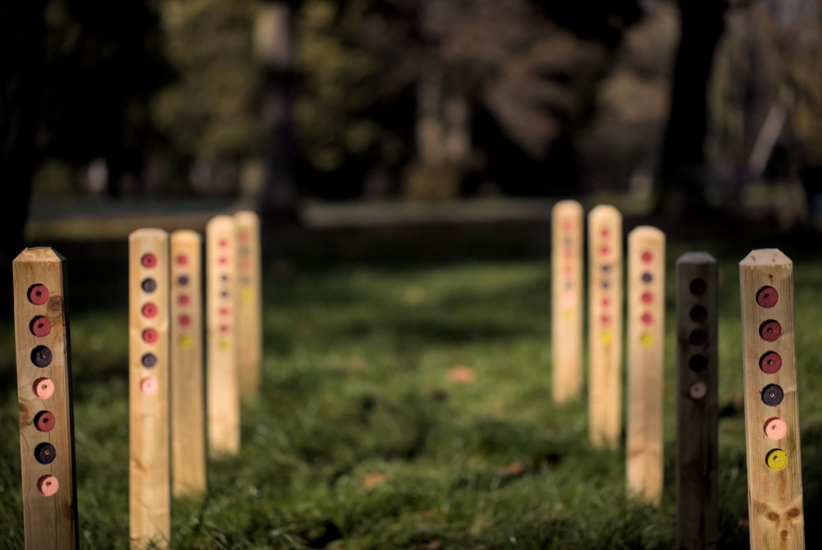 Wooden Posts with painted Holes